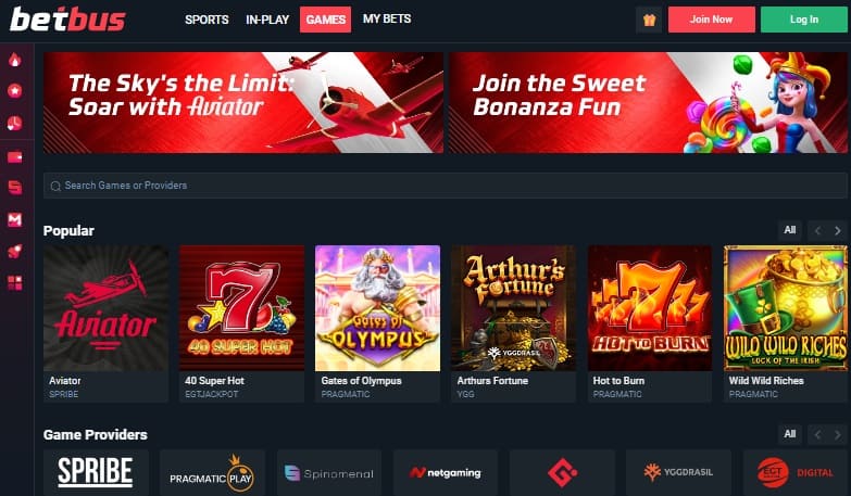 - Aviator by Spribe: For fans of crash games, BetBus includes Aviator by Spribe, a unique game where players place bets and watch as an airplane takes off. The challenge is to cash out before the plane crashes, making for a thrilling game of risk and reward.