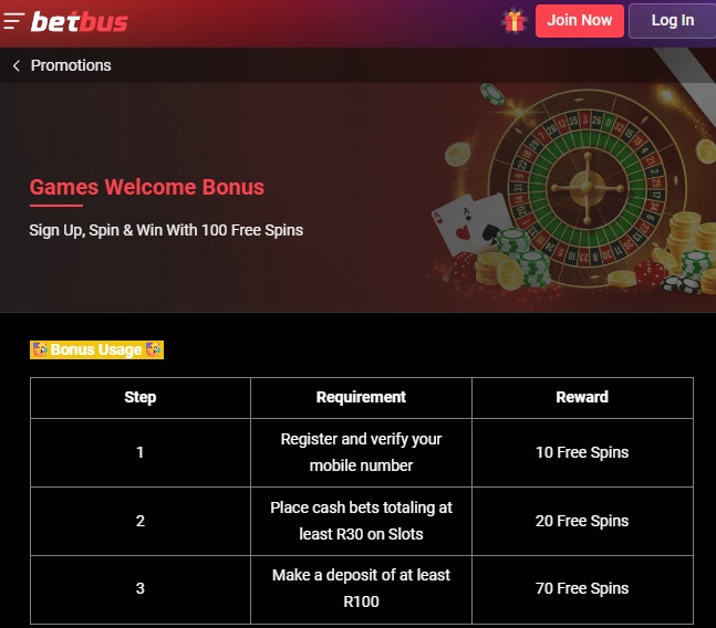 Sign up for a BetBus account at www.betbus.co.za, verify your mobile number, and get 10 spins instantly. No deposit needed.