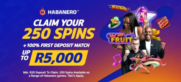 On top of your spins and deposit match, you’ll also get a R25 Bonus Bet straight after depositing.