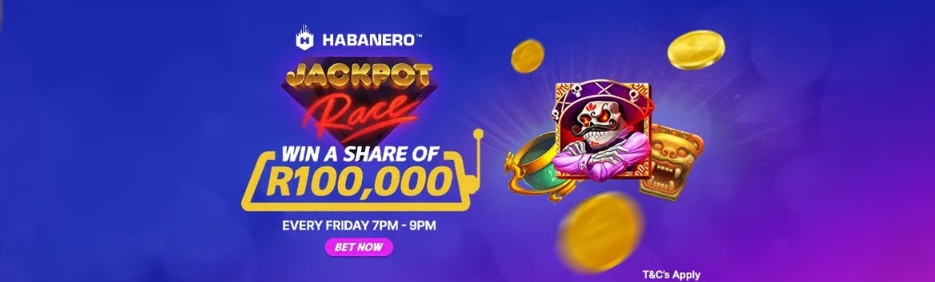 The Habanero Jackpot Race at SuperSportBet is a fast paced, competitive way to enjoy your favorite slots with the added thrill of racing for leaderboard glory. With R100,000 guaranteed in prizes every Friday and a chance for 100 players to win, it offers great value and entertainment for slot enthusiasts who enjoy competition. Visit SuperSportBet today to take place in the Jackpot race, or check out our articles on the SuperSportBet Thursday Free Spins, as well as our SuperSportBet review, happy gambling!